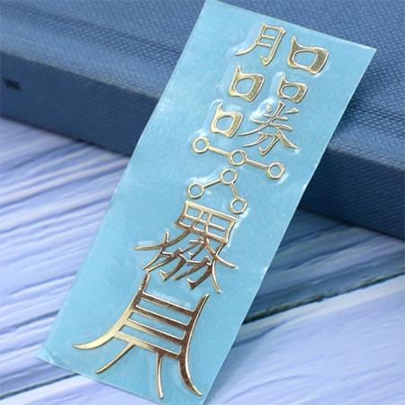 金屬貼符種類比較多,有發(fā)財(cái)符,佛字,萬(wàn)字,賭勝符,護(hù)身符,六字真言等都可根據(jù)客戶的需要尺寸及樣式效果顏色定制生產(chǎn)。